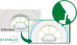 静かなMRIで広い空間(最大90%騒音カット)